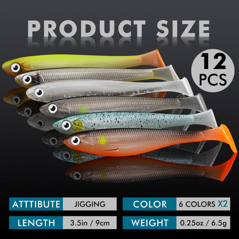 Hook free design - These TRUSSEND soft bait hook free designs allow you to install the hook anywhere on the bait as needed, making it more suitable for professional anglers. The soft bait has a size of 3 inches and can hit multiple times. This bait will become your necessary paddle tail bait, targeting bass, trout, Walleye, Barracuda, salmon, red fish, etc.
