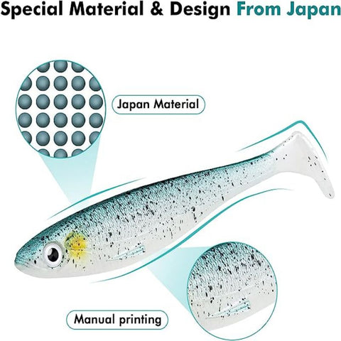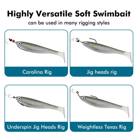 Realistic movements - The soft body of the bait uses precisely designed shapes to create realistic swimming movements at various retrieval speeds. This type of paddle tail bait will soon become one of the highest yield and most widely used bait.